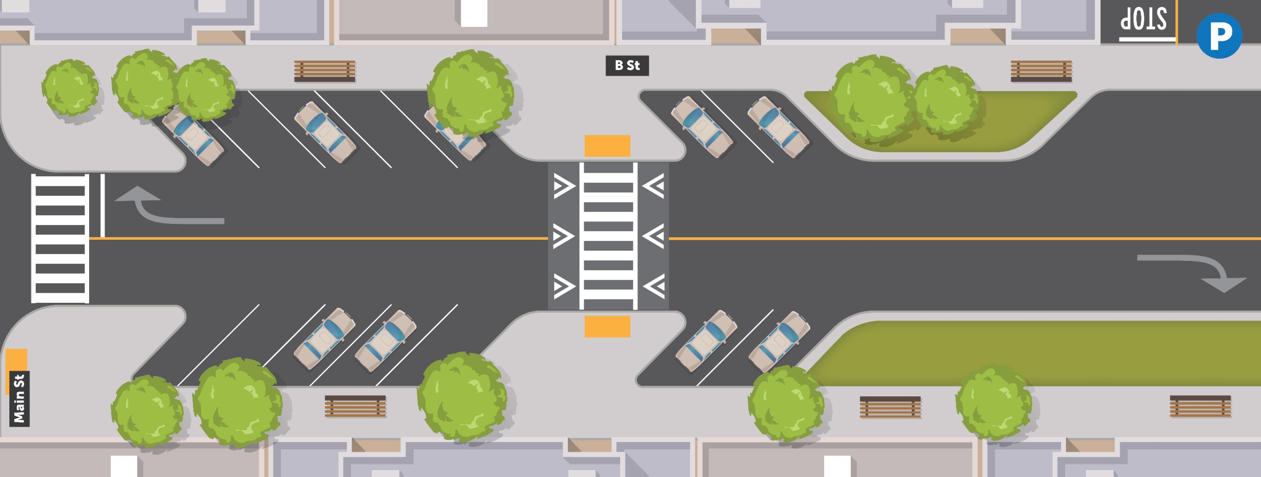For this corridor, the City is presenting three design options, each offering a different way to experience B Street. We invite you to review all three and share which option you prefer.