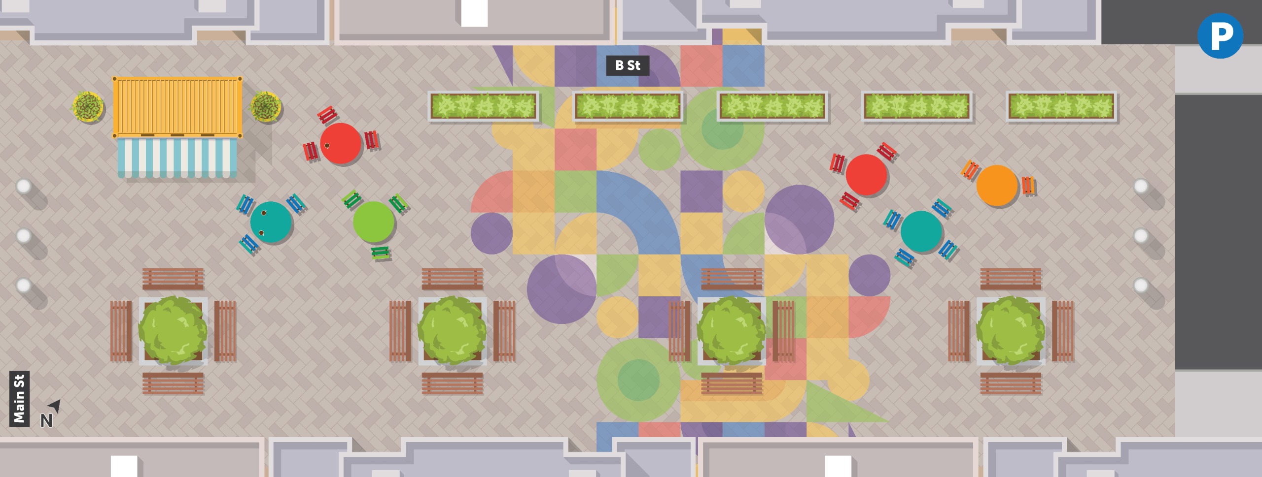 C Street is an important east–west connection in Downtown Hayward, providing access to key destinations including the Hayward Public Library, the BART Station, and Municipal Parking Lot #3.
