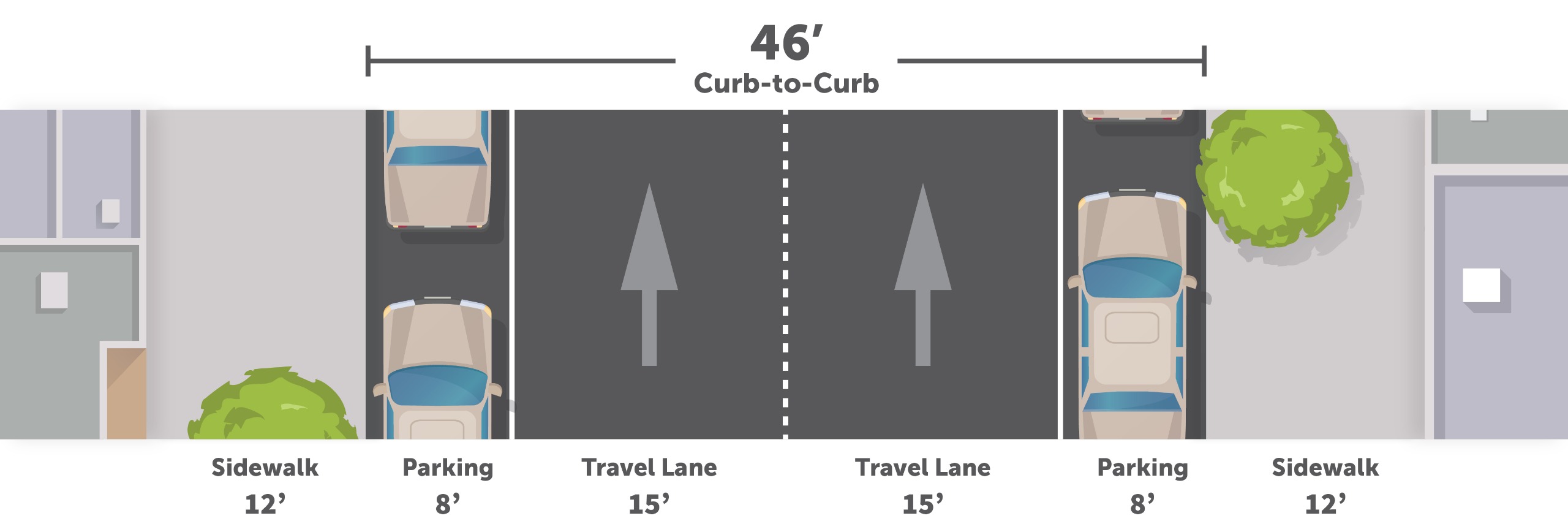 - The proposed street configuration for two distinct segments of the corridor.